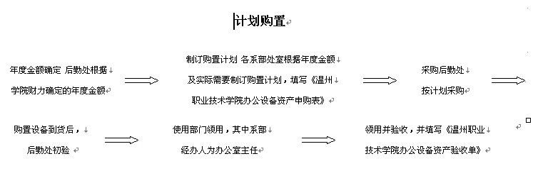 1、受理机构:行政楼116室 联系电话:866800812、 申报材料:《温州职业技术学院办公设备资产申购表》3、办理时间:每个工作日4、办理流程: